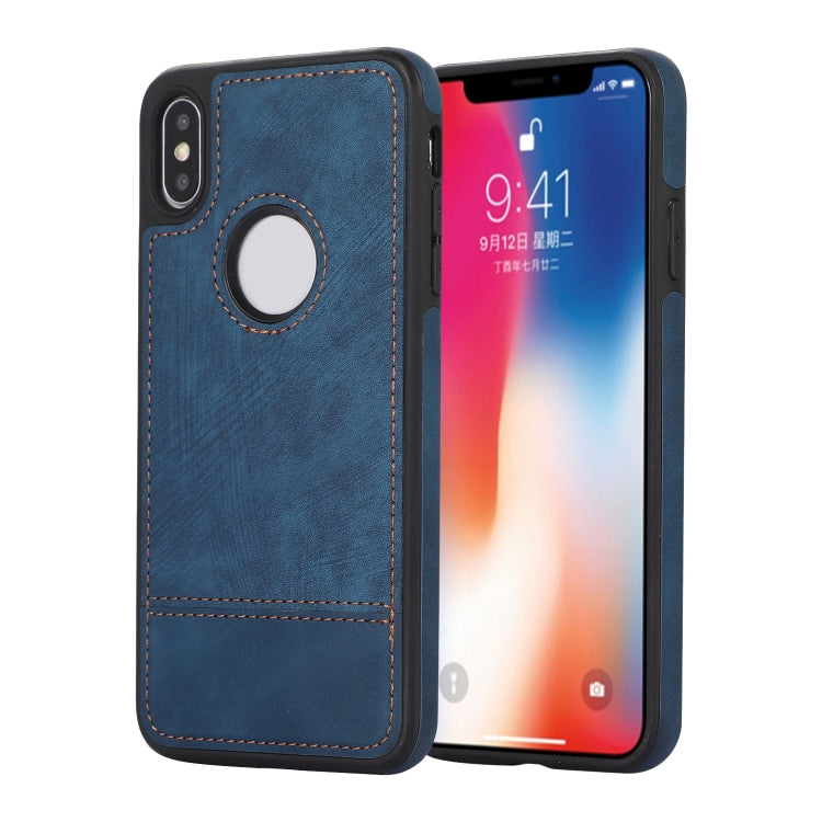 Funda para iPhone X / Xs Empalme Costura Caja de Teléfono de PU con Recorte Hueco (Azul)