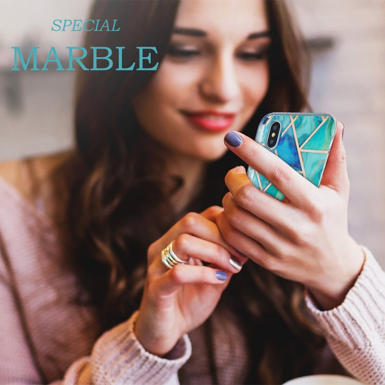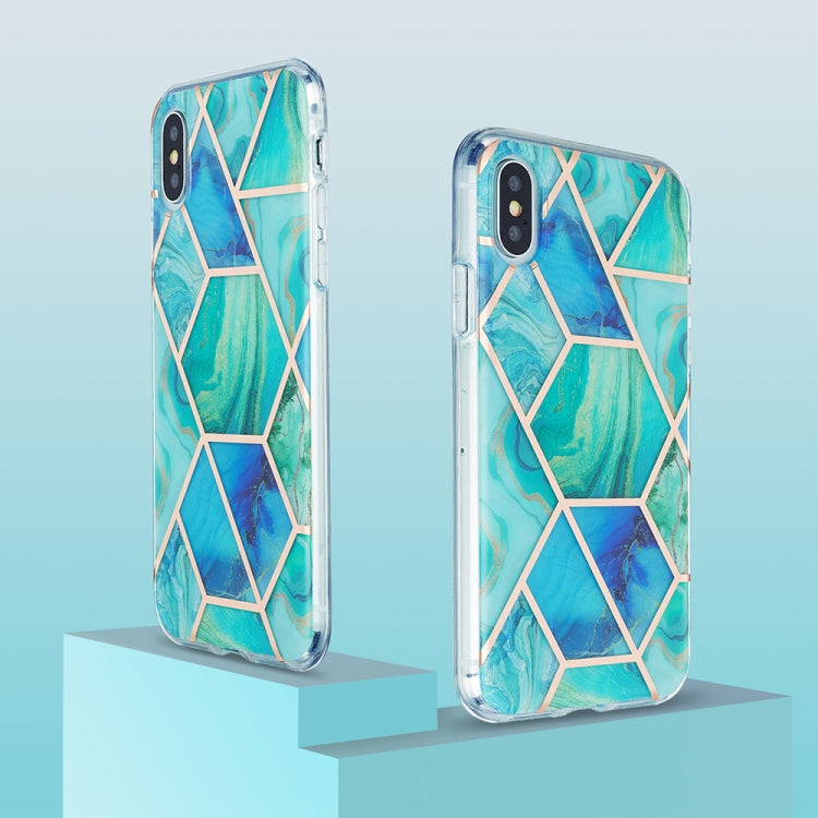 Estuche Protector TPU iPhone X Xs Patrón Mármol Galvanoplastia 3D (Verde Azul)