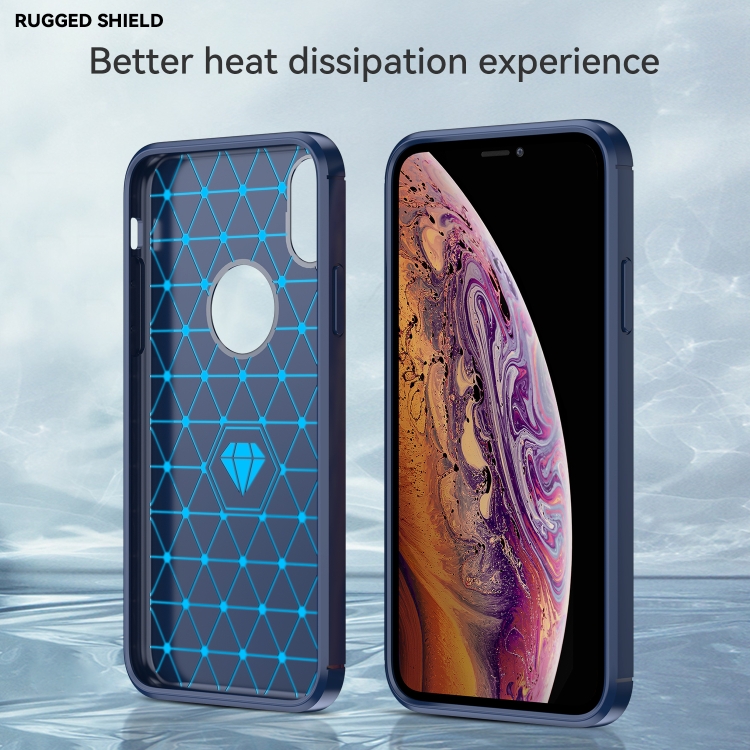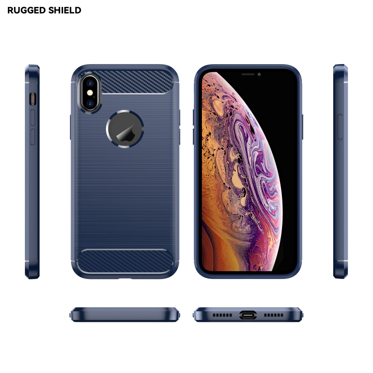 Funda Protectora para iPhone X Xs Fibra de Carbono TPU Textura Cepillada a Prueba de Golpes (Azul Marino)