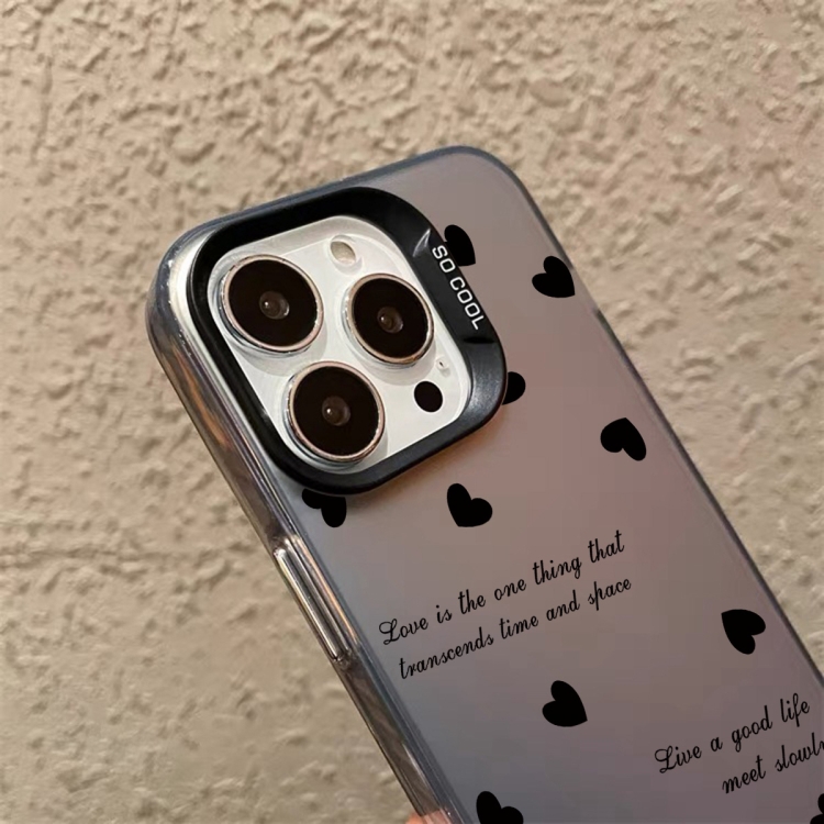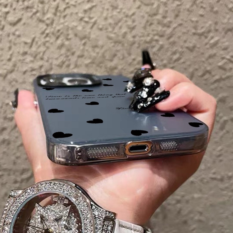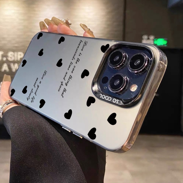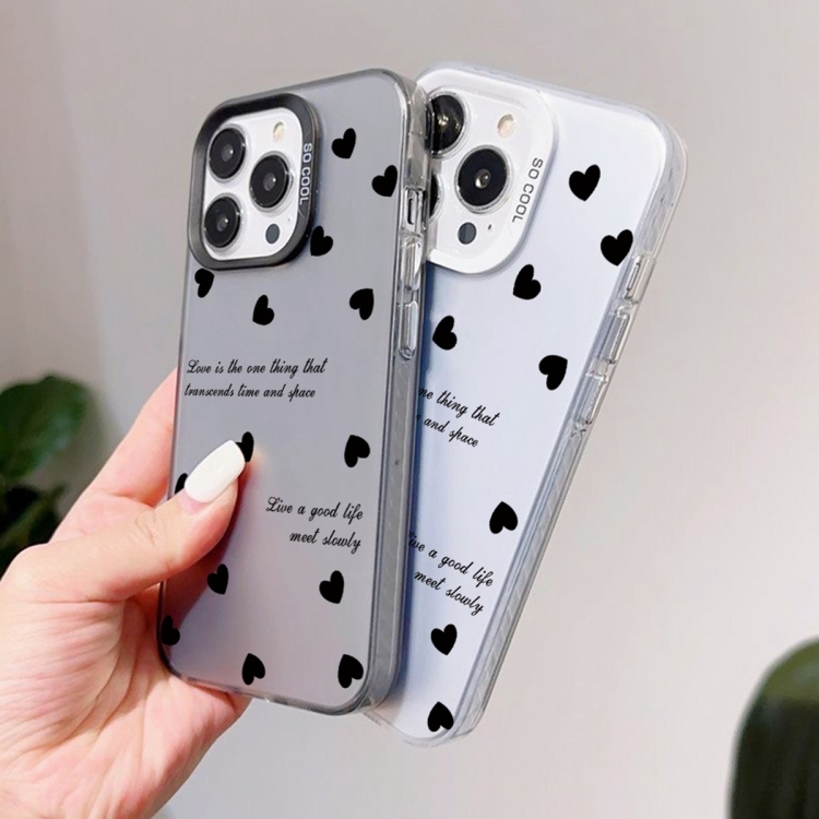 Funda híbrida para iPhone X Xs TPU pintura plateada PC (Love Hearts Black)