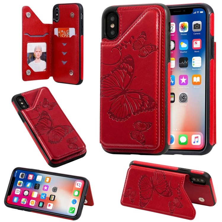 Funda Protectora para iPhone X y Xs con Estampado de Mariposas Soporte y Ranuras para Tarjetas (Rojo)