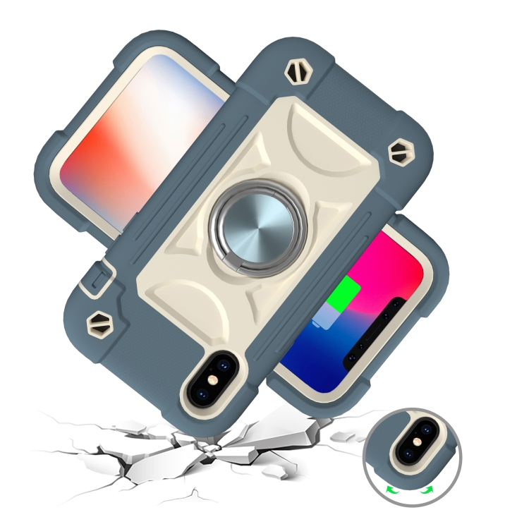 Funda Protectora Silicona + PC para iPhone X Xs con Soporte Doble Anillo (Azul Margarita)
