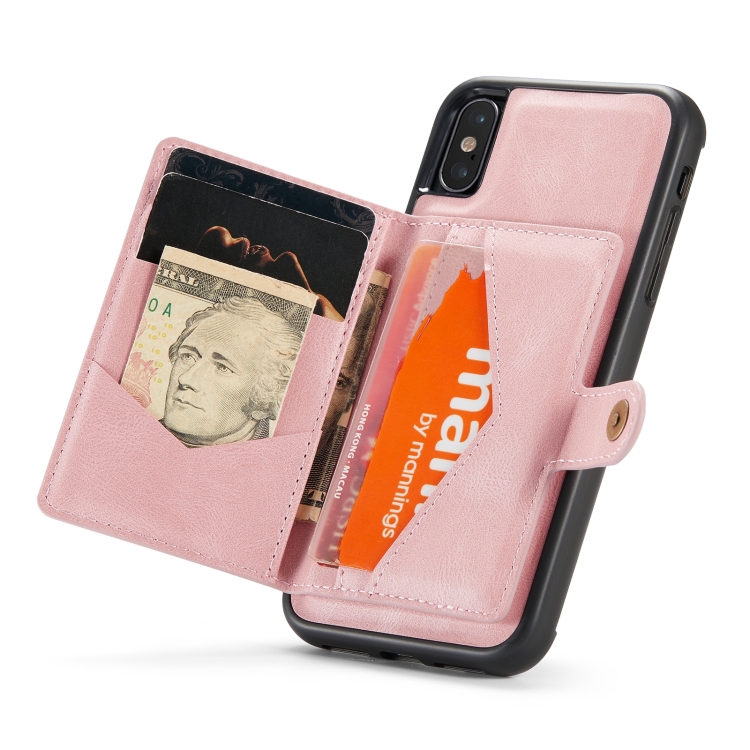 Estuche Protector para iPhone X / Xs Jeehood Desmontable Magnético con Billetera Ranura y Soporte (Rosa)