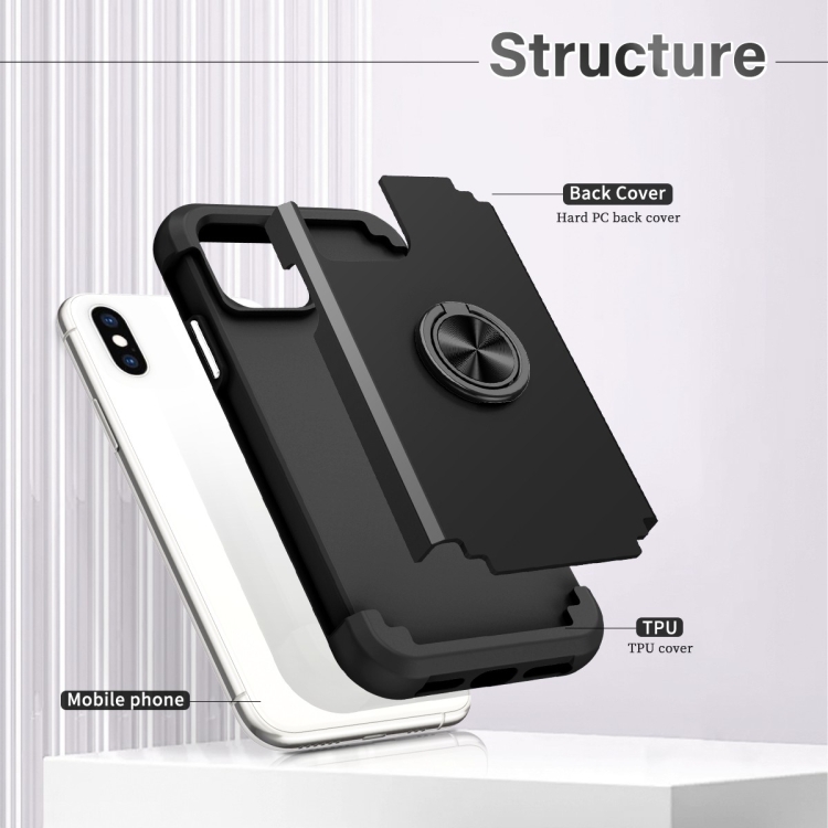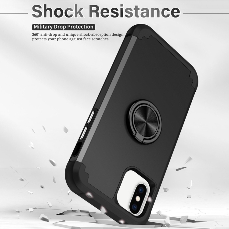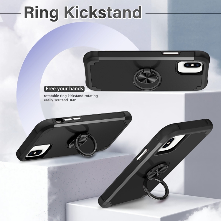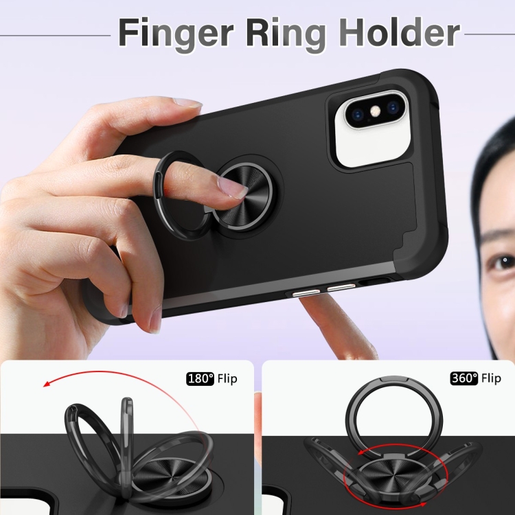Funda Magnética para Teléfono iPhone X Xs L2 con Soporte de Anillo Giratorio (Negro)