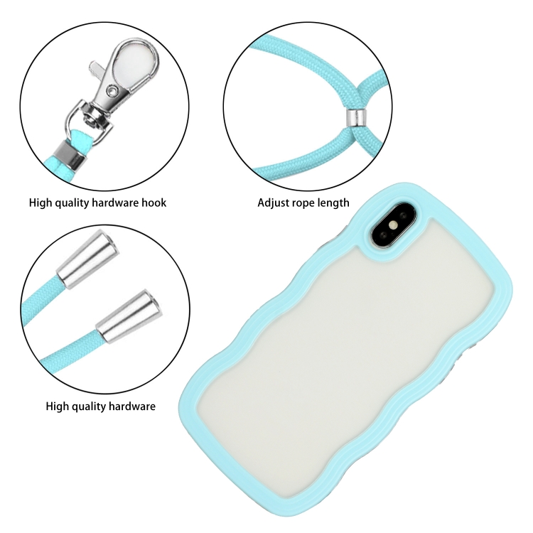 Funda para iPhone X Xs Lanyard Candy Color Wave TPU Clear PC (Azul)