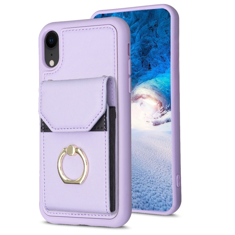 Funda para Teléfono Bf29 para iPhone Xr con Soporte para Anillo y Bolsa para Tarjeta de Órgano (Púrpura)