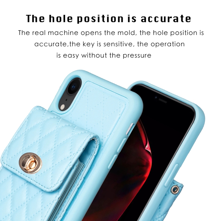 Caja de Teléfono para iPhone Xr Rombal Cuero con Hebilla de Metal Vertical (Azul)