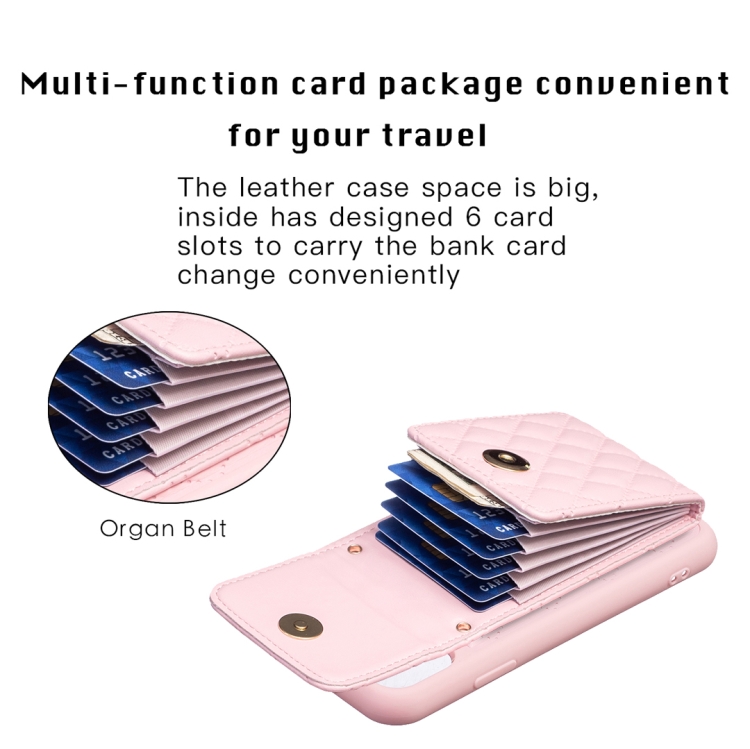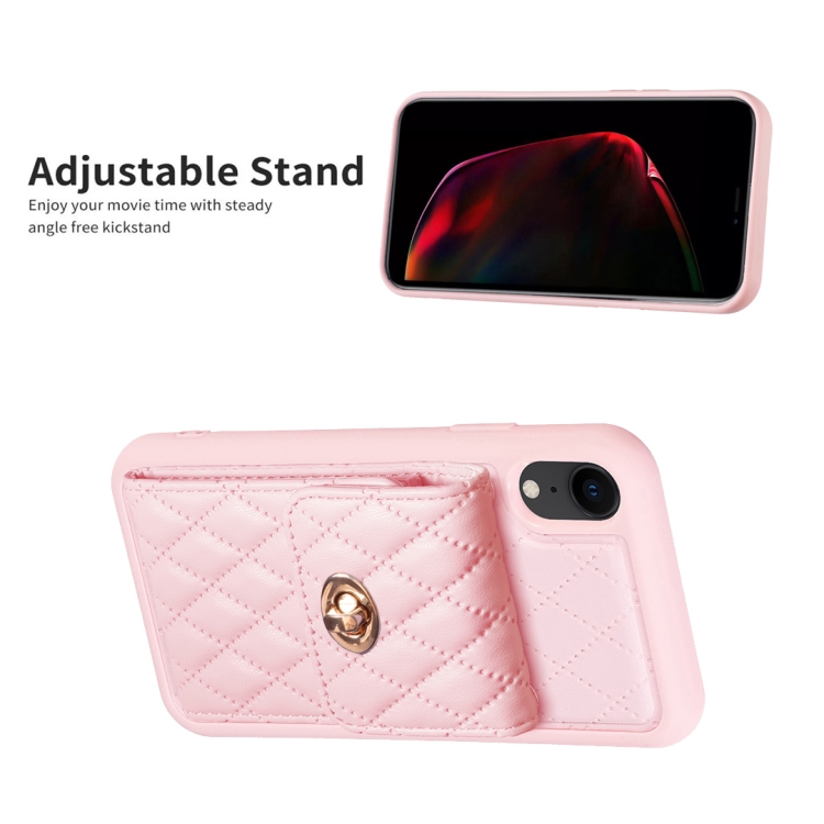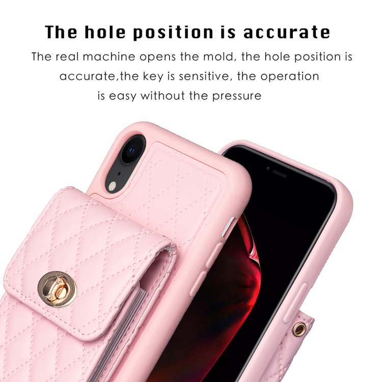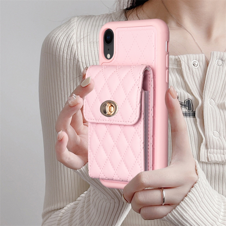 Caja de Teléfono para iPhone Xr Cuero Rombal con Hebilla de Metal Vertical (Rosa)