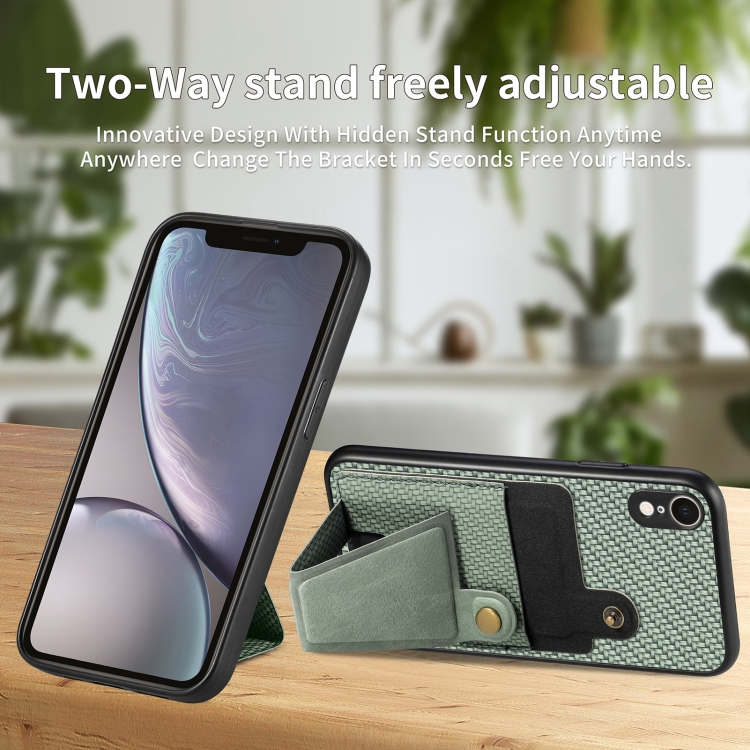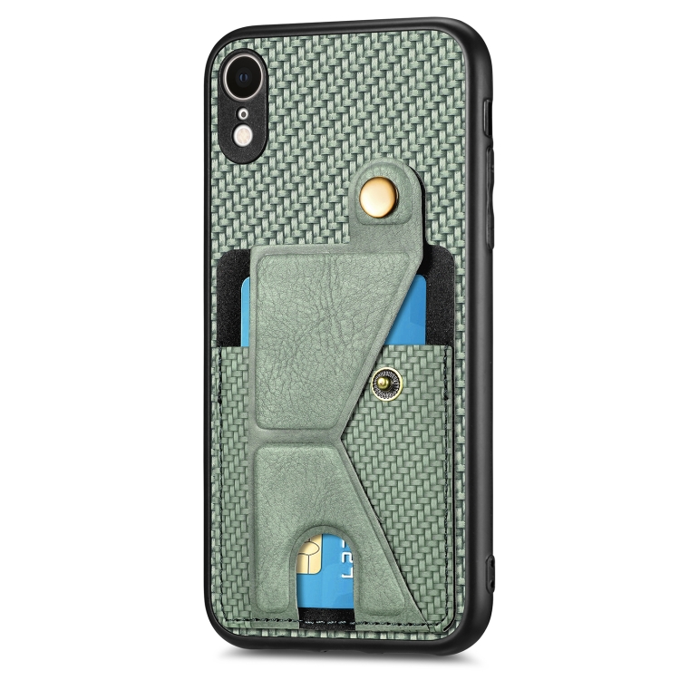 Funda Cartera para iPhone Xr Fibra de Carbono Flip Card con Soporte en Forma de K (Verde)