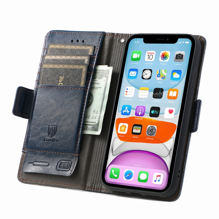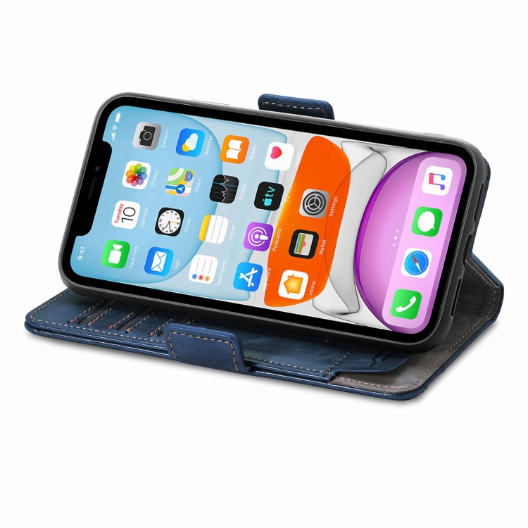 Funda para iPhone Xr Caseneo Business Splicing Dual Magnetic Buckle Horizontal Flip PU Cuero con Soporte y Ranuras para Tarjetas y Billetera (Azul)