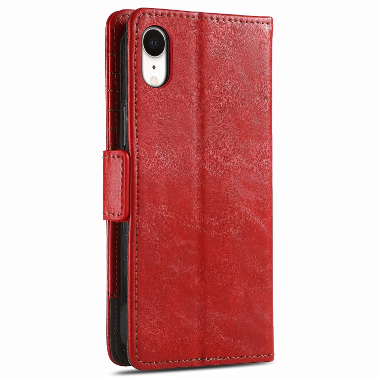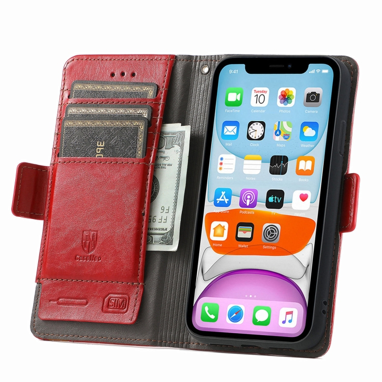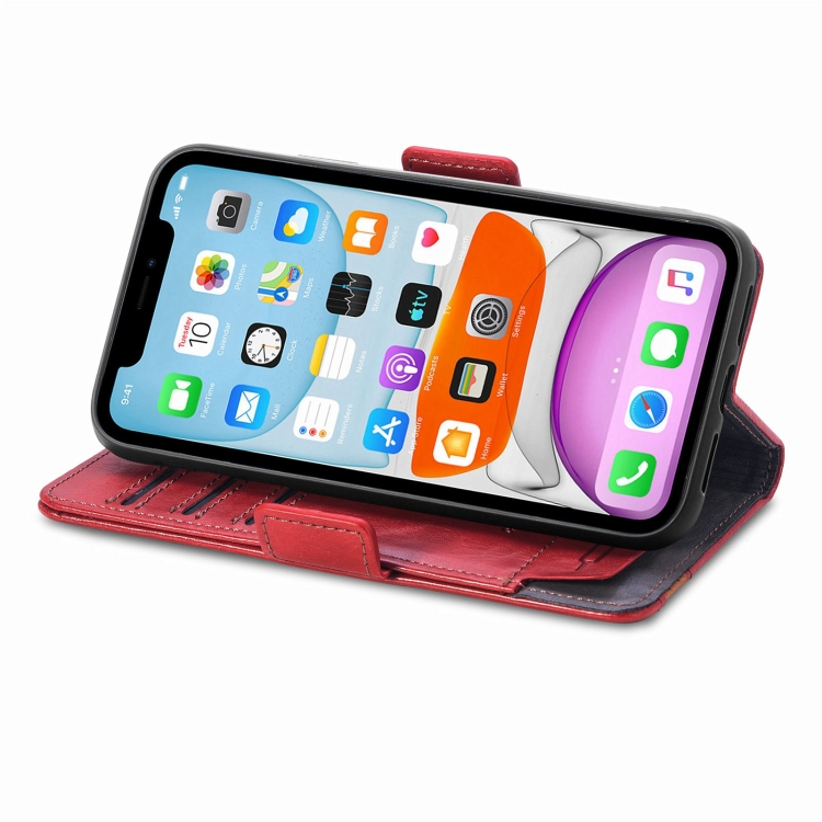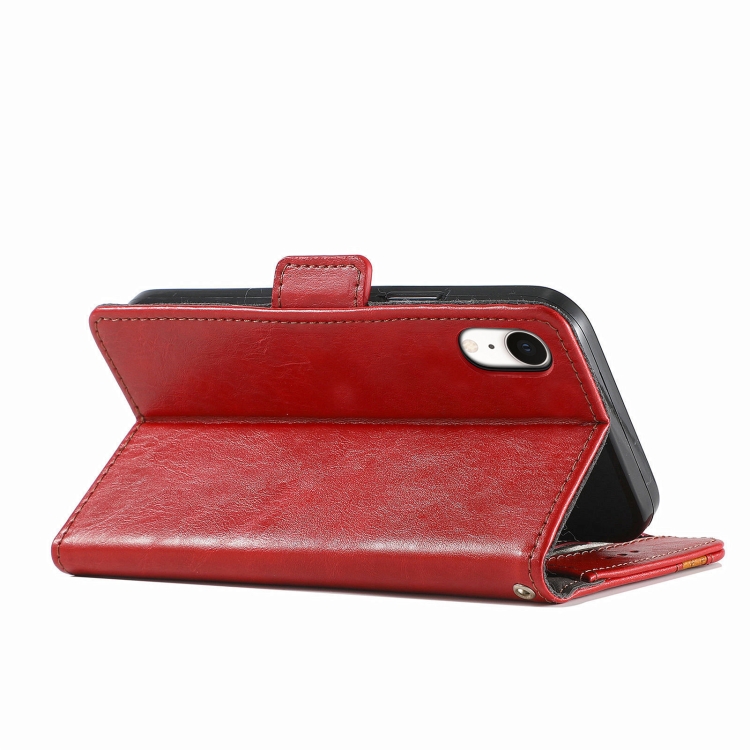 Funda para iPhone Xr Caseneo Business Splicing Dual Magnetic Buckle Horizontal Flip PU Cuero con Soporte y Ranuras para Tarjetas y Billetera (Rojo)