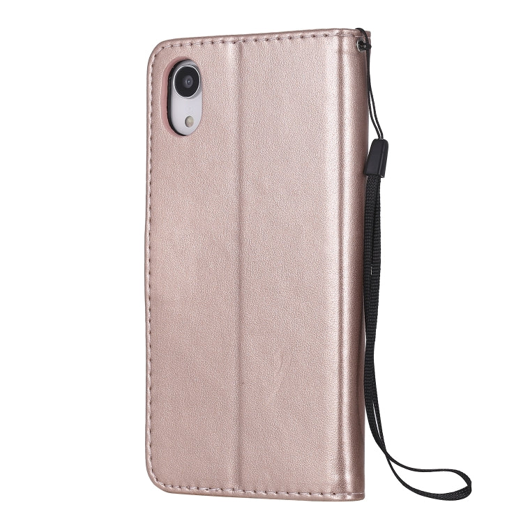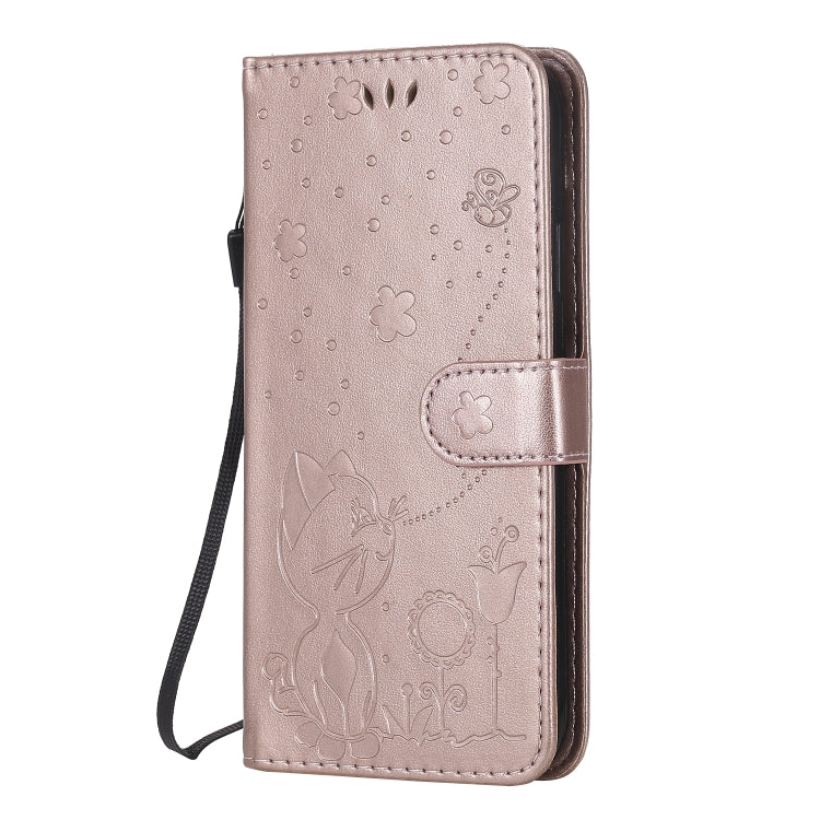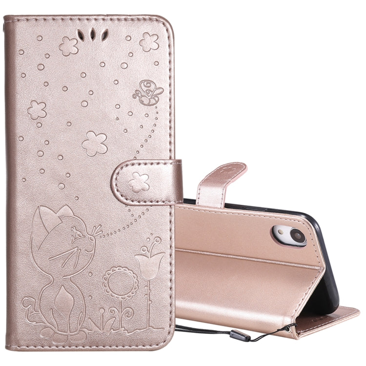 Funda de Cuero para iPhone Xr Cat Bee con Patrón en Relieve, Tapa Horizontal, Soporte y Ranuras para Tarjetas (Oro Rosa)