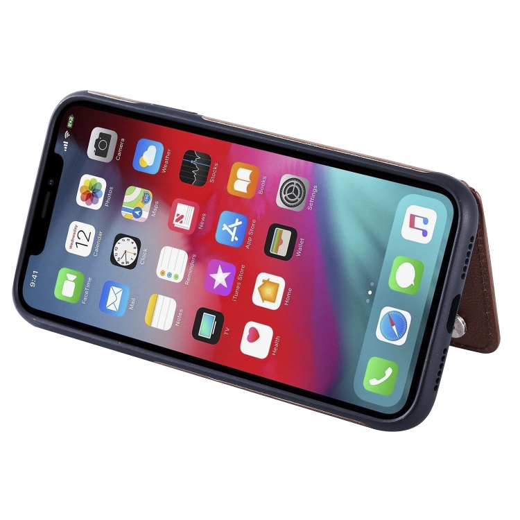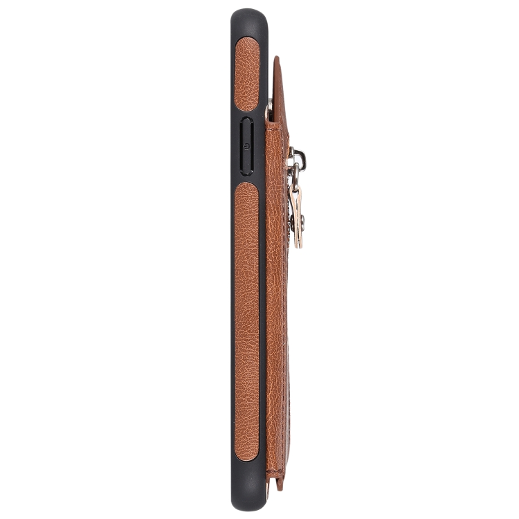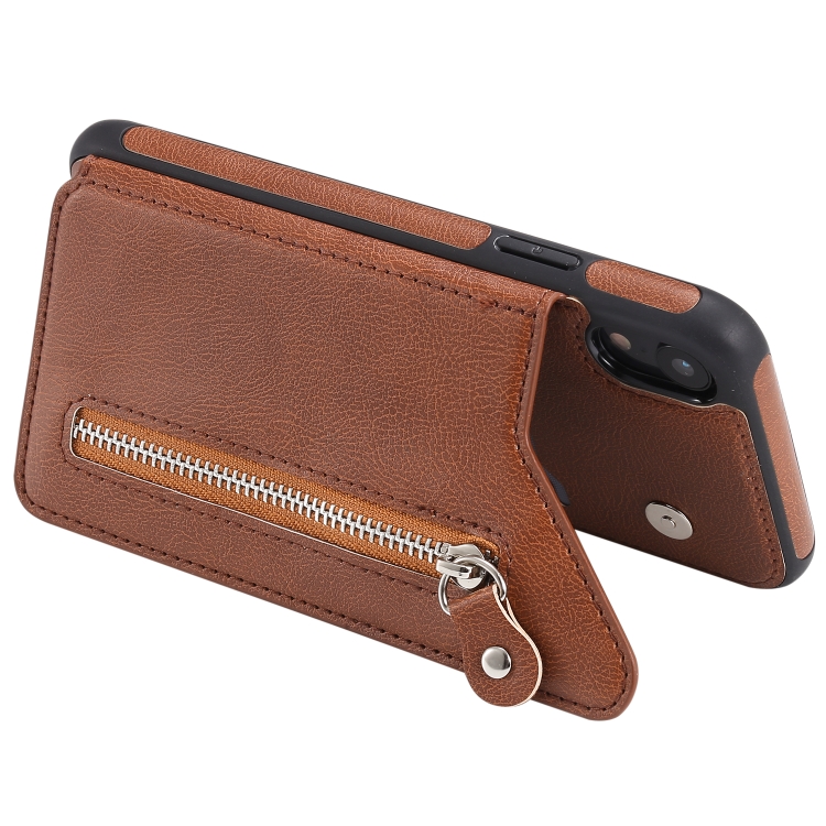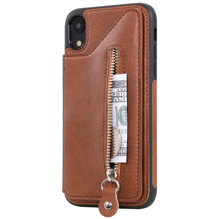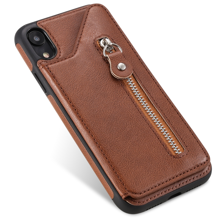 Funda Protectora para iPhone Xr Doble Hebilla Cremallera a Prueba de Golpes (Marrón)