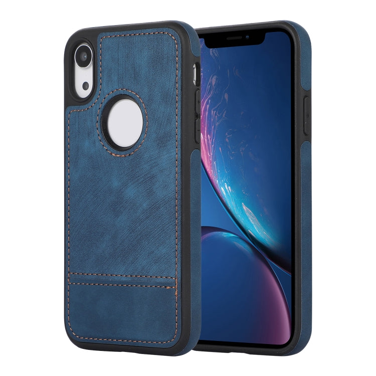 Funda para iPhone Xr Empalme Costura Caja de Teléfono de PU con Recorte (Azul)