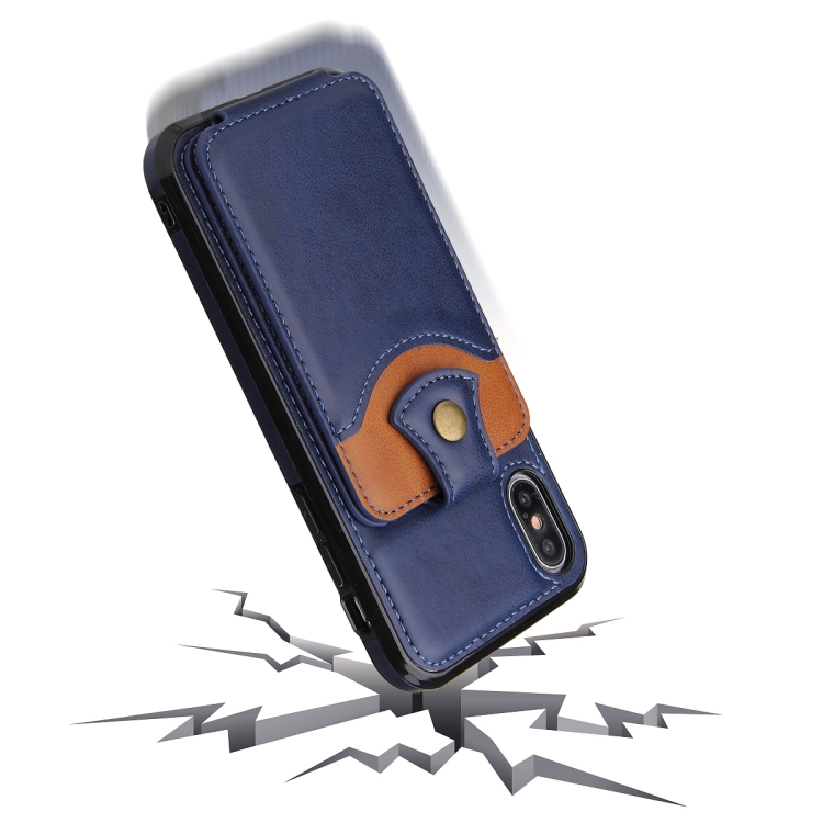 Estuche para Teléfono iPhone Xr con Billetera de Cuero de Piel Suave (Azul)