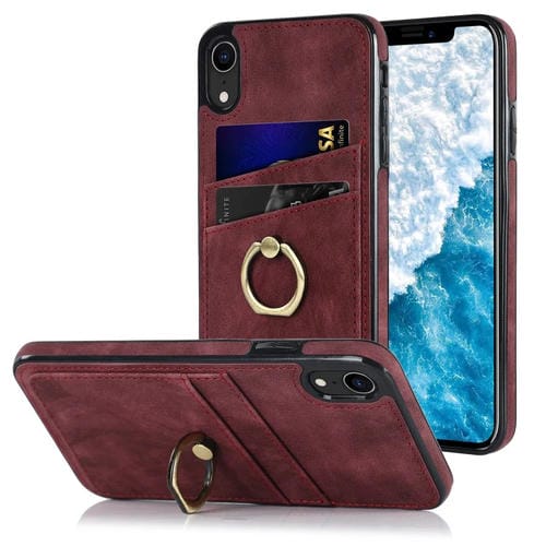 Estuche para Teléfono iPhone Xr Cuero Parche Vintage Soporte para Anillo (Rojo)