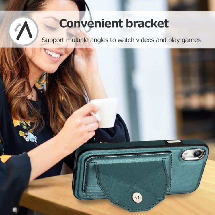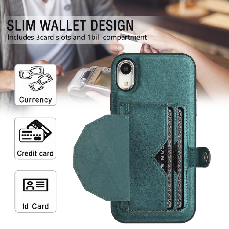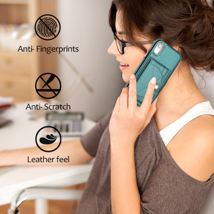 Funda de Teléfono iPhone Xr Cuero a Prueba de Golpes con Tarjetero (Verde)