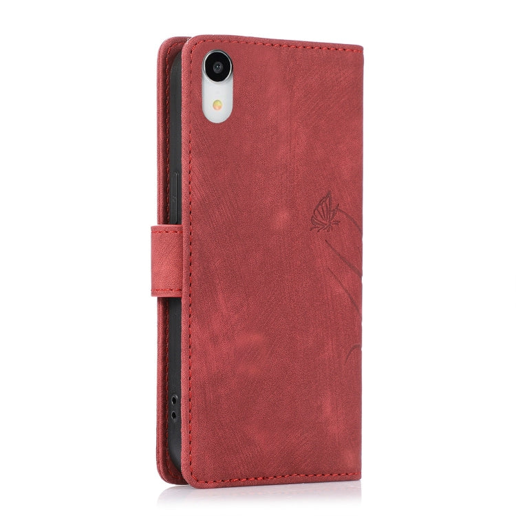 Funda para Teléfono iPhone Xr Cuero Relieve Mariposa Orquídea (Rojo)