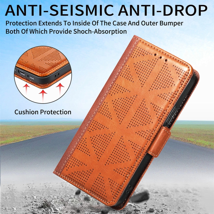 Funda de Cuero para iPhone Xr Grid con Tapa para Teléfono (Marrón)