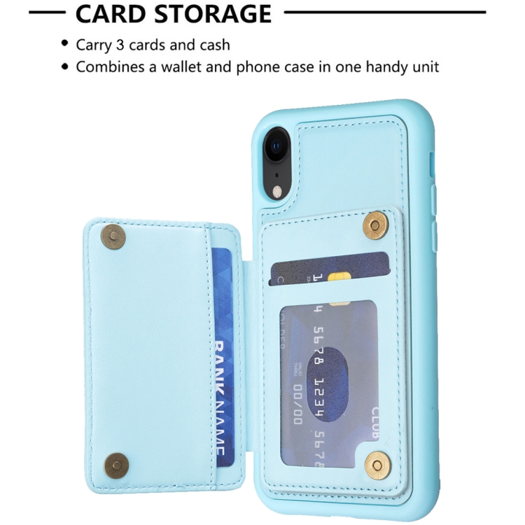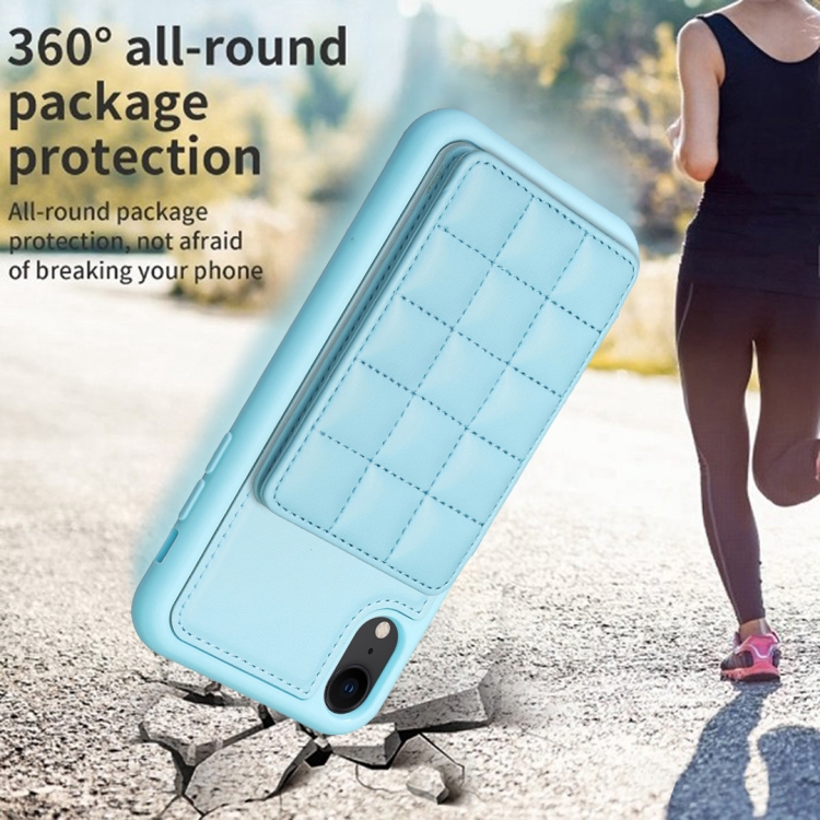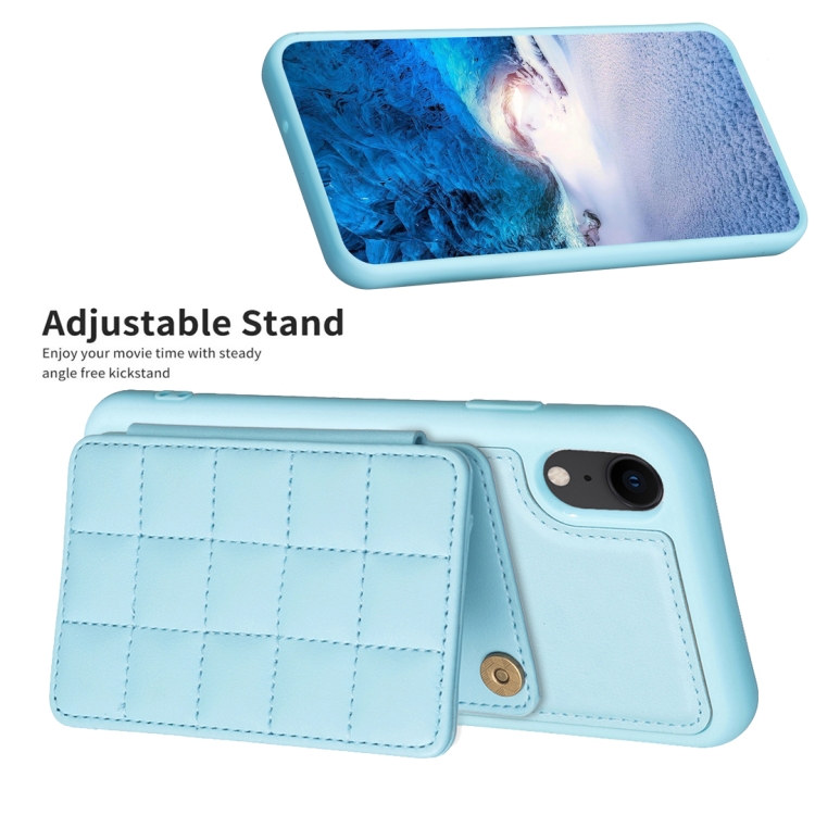 Funda para Teléfono iPhone Xr Grid Ranura para Tarjeta con Soporte (Azul)
