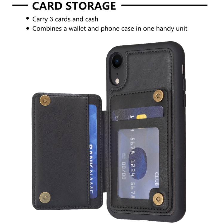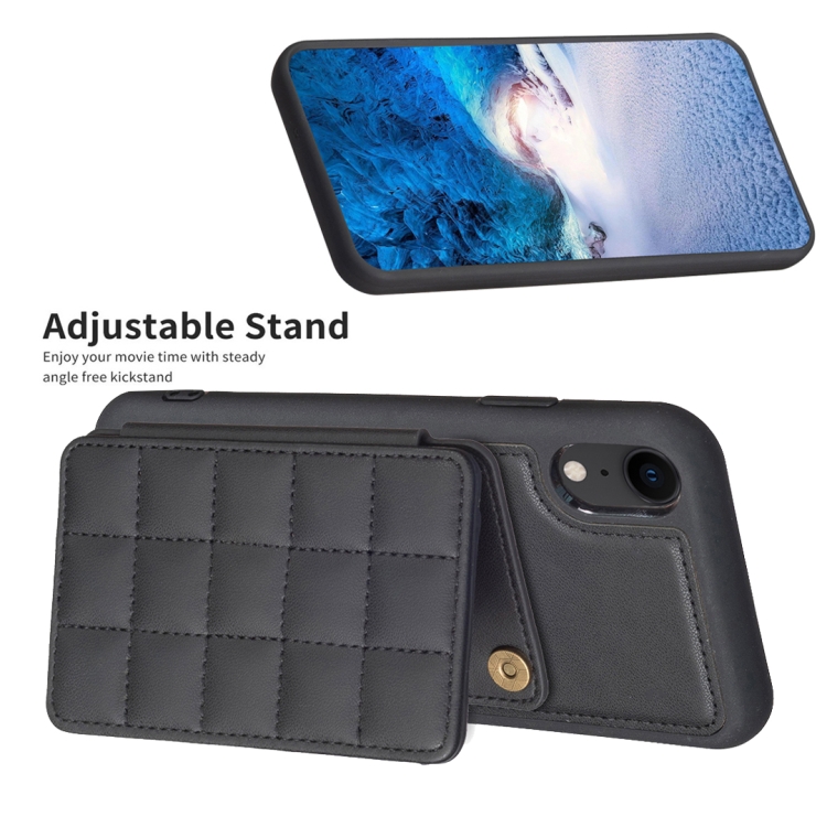 Funda para Teléfono iPhone Xr Grid Ranura para Tarjeta con Soporte (Negro)