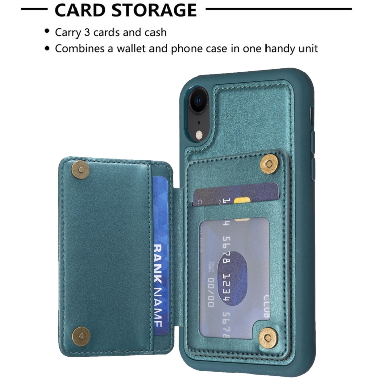 Funda para Teléfono iPhone Xr Grid Ranura para Tarjeta con Soporte (Verde)