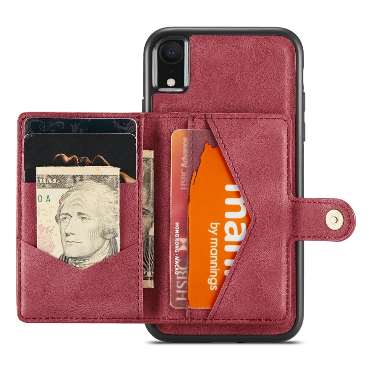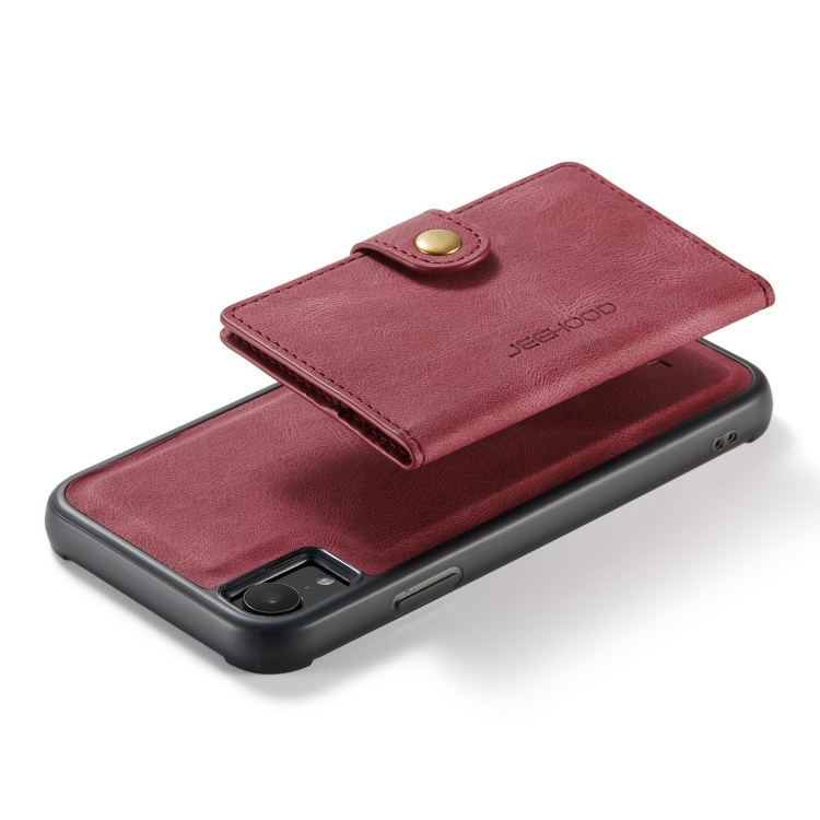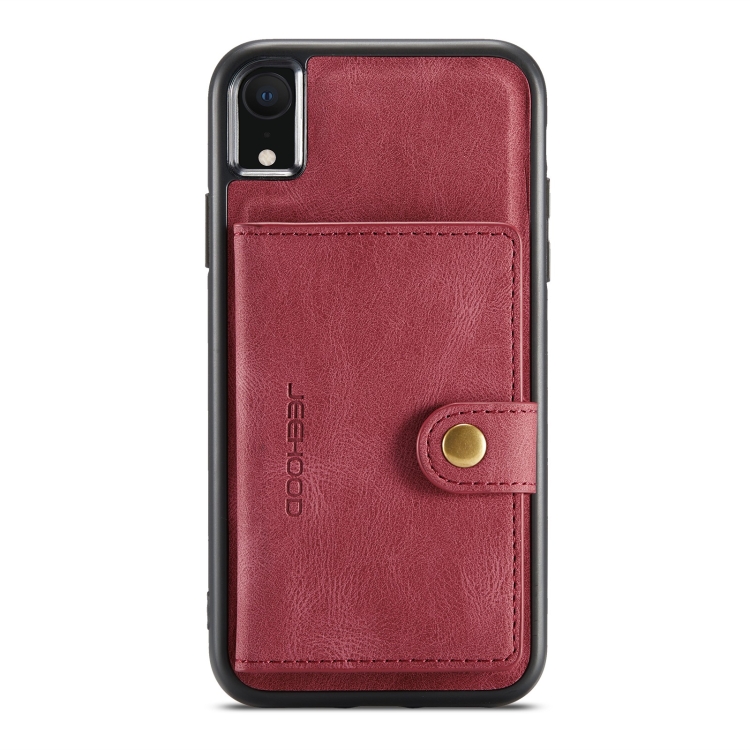 Estuche Protector para iPhone Xr Jeehood Desmontable Magnético Retro con Billetera y Soporte (Rojo)