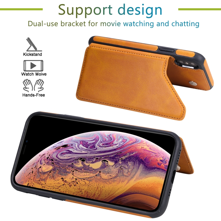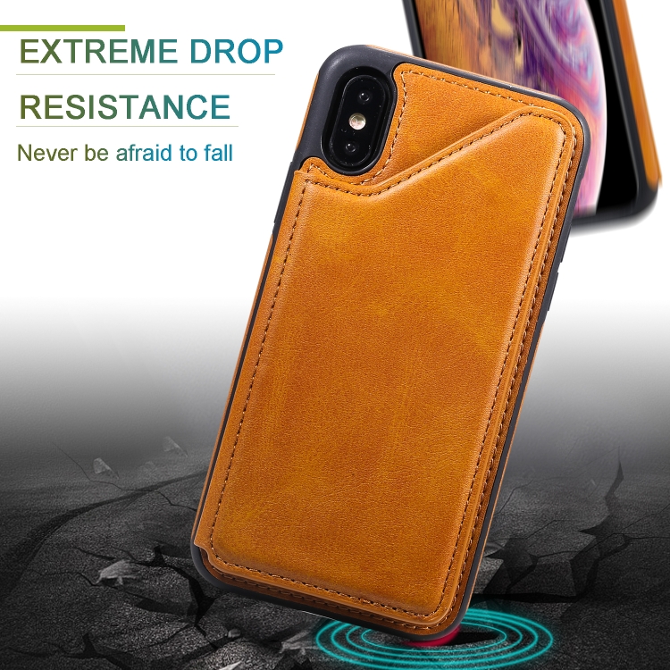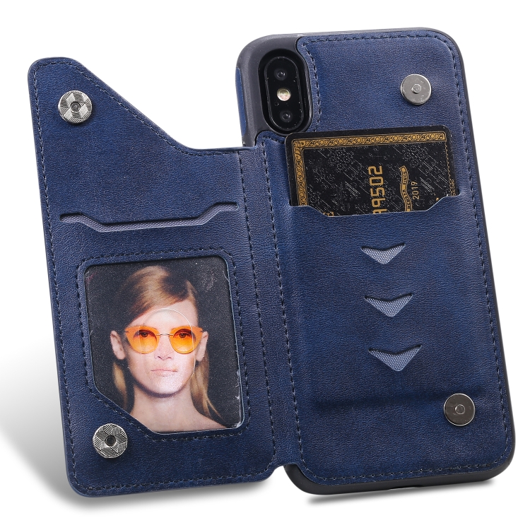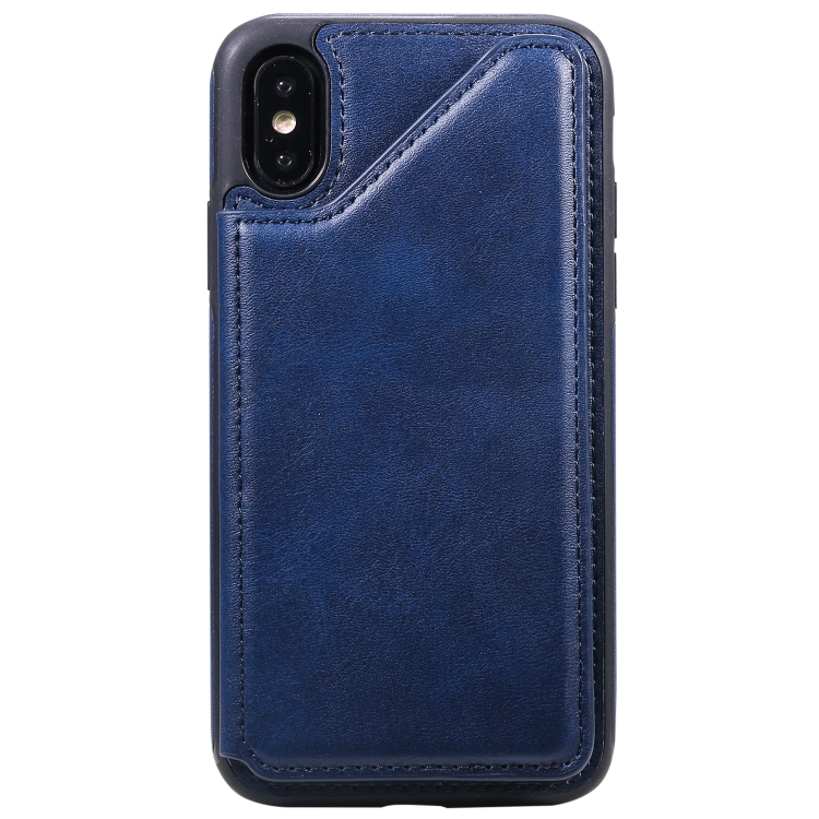 Funda Protectora para iPhone Xs Textura de Pantorrilla a Prueba de Golpes con Soporte y Ranuras para Tarjetas (Azul)