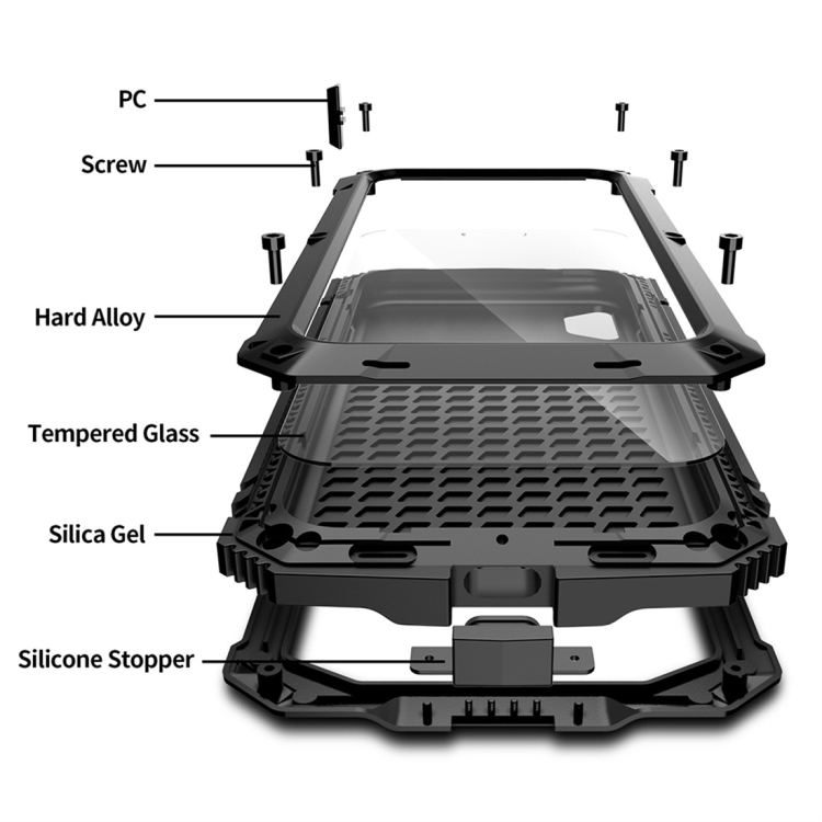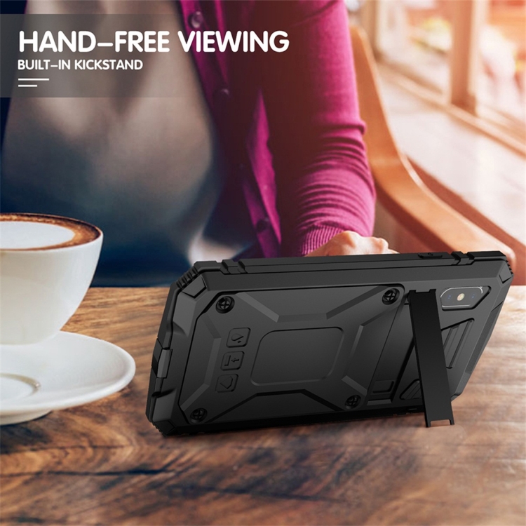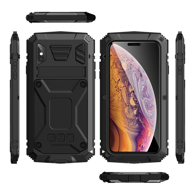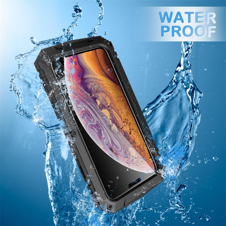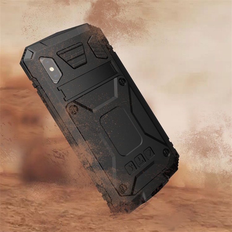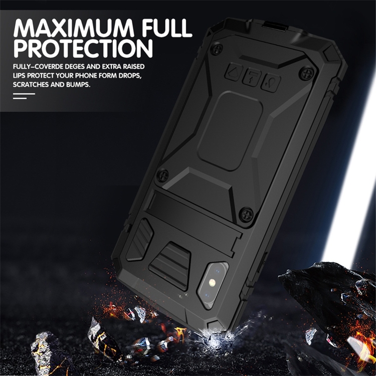 Funda Protectora para iPhone Xs Max Metal y Silicona con Soporte a Prueba de Golpes Agua Polvo (Negro)