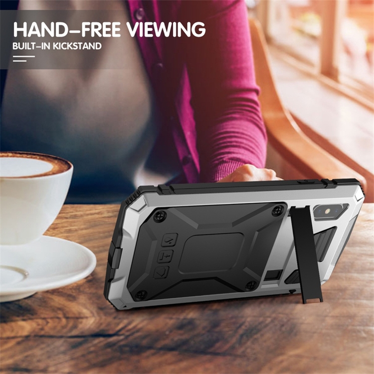 Funda Protectora para iPhone Xs Max Metal + Silicona con Soporte a Prueba de Golpes Agua Polvo (Plata)