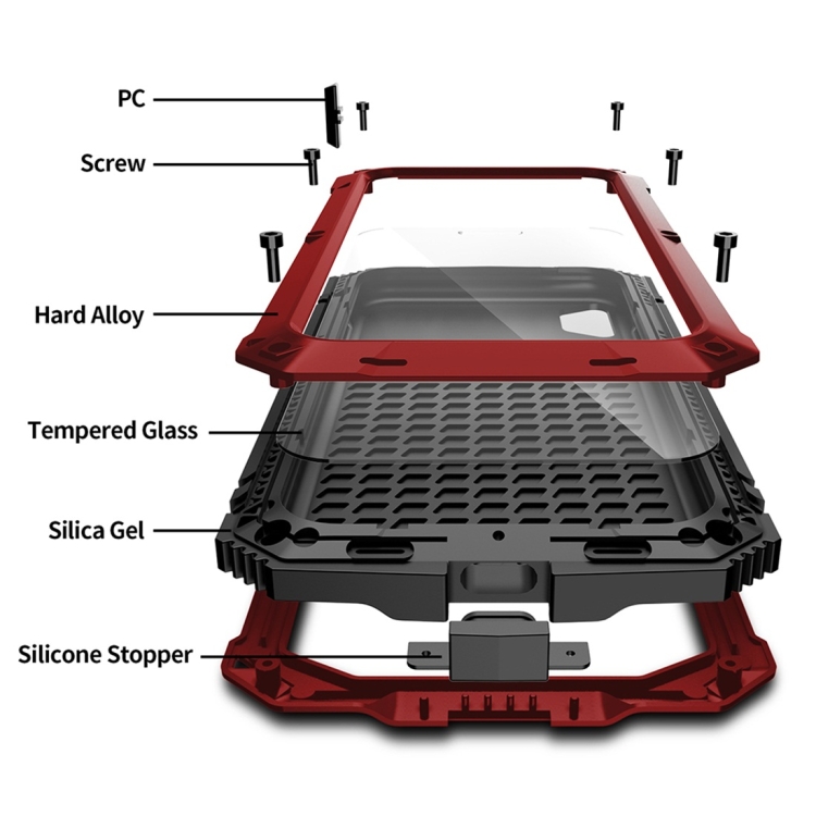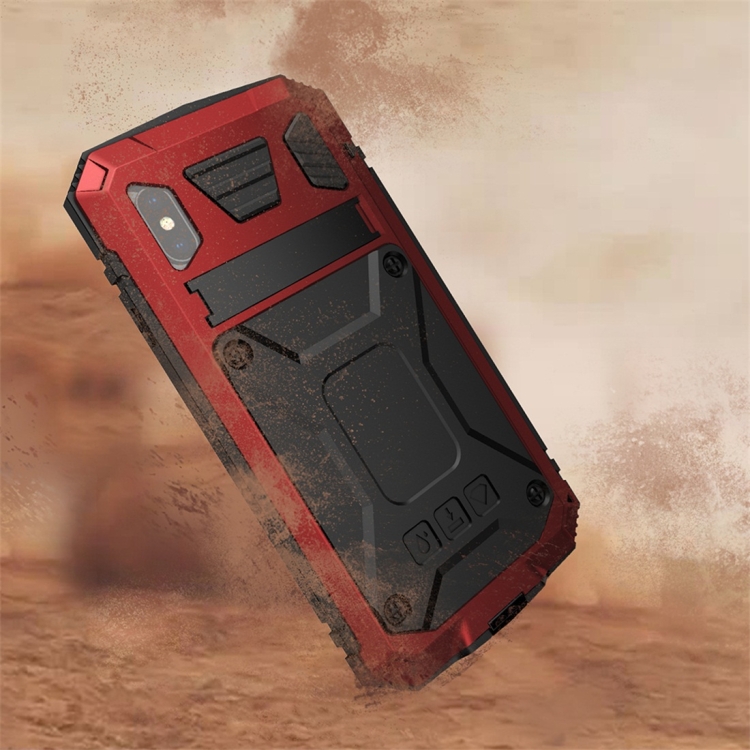 Funda Protectora para iPhone Xs Max Metal y Silicona con Soporte a Prueba de Golpes Agua y Polvo (Rojo)