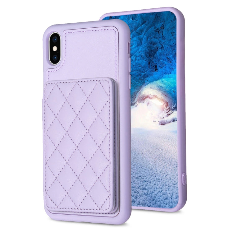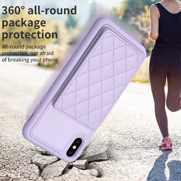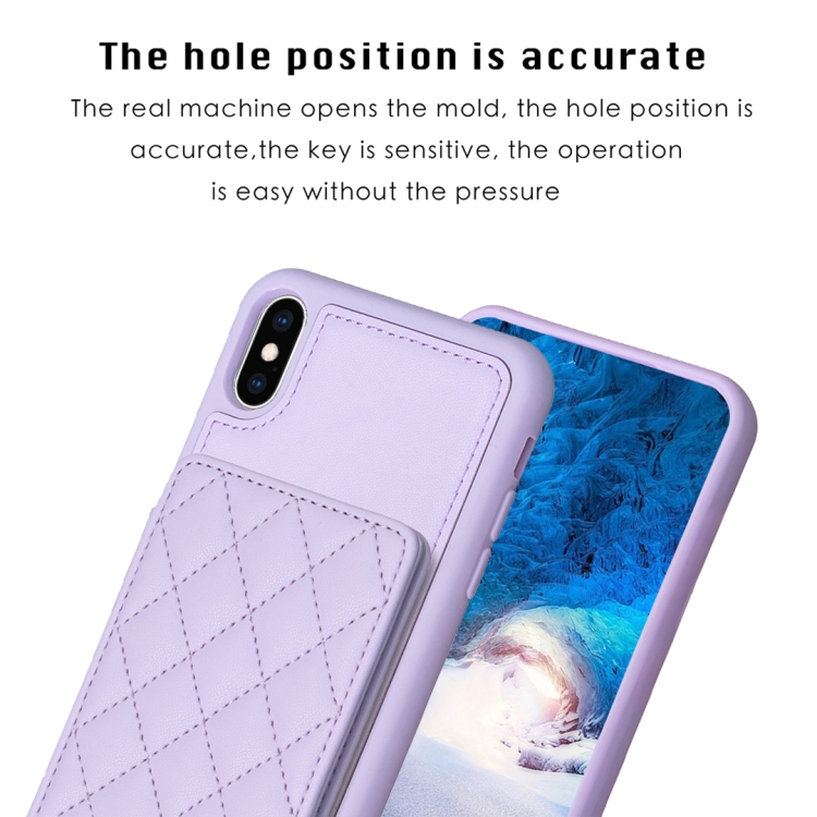Funda para iPhone Xs Max Bf25 Square Plaid Card Bag Holder con Soporte para Tarjetas (Púrpura)