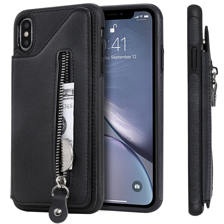 Funda Protectora para iPhone Xs Max Doble Hebilla Cremallera a Prueba de Golpes (Negro)