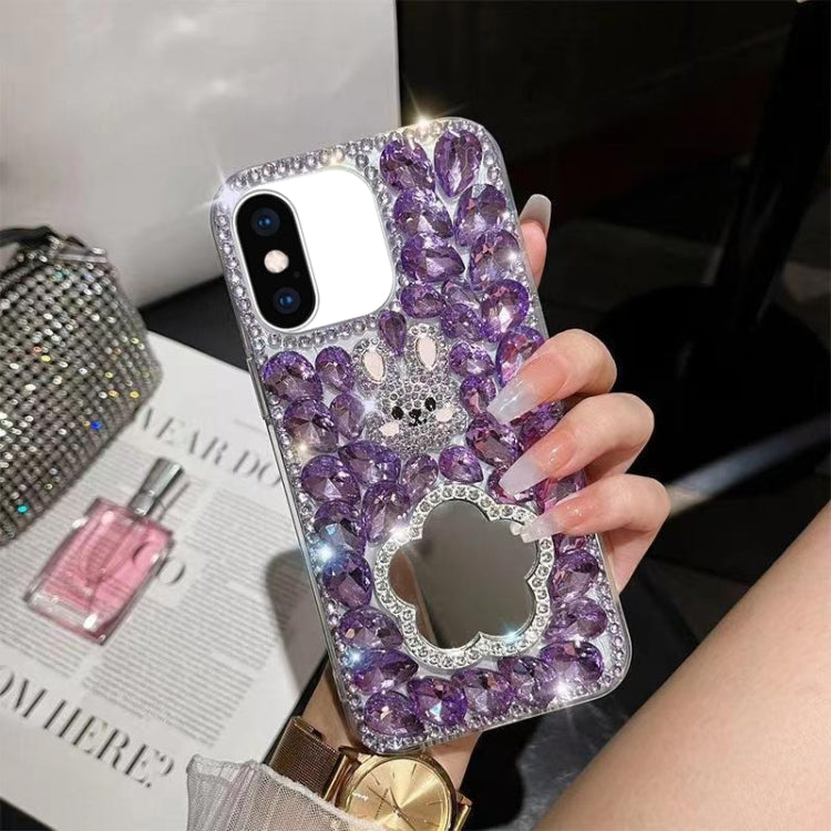 Funda para Teléfono iPhone Xs Max Diamond Mirror Bunny Hecha a Mano para PC (Espejo de Flor Púrpura)