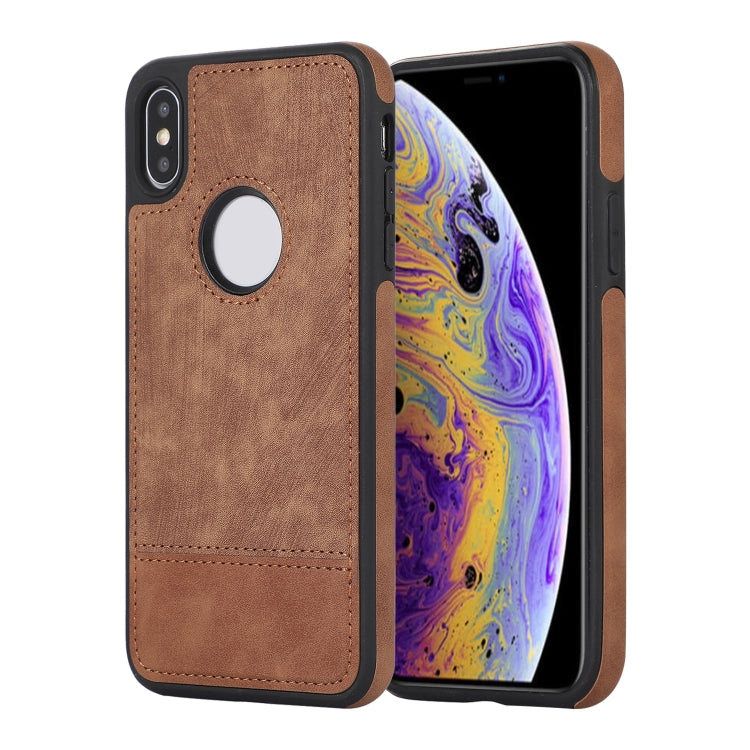 Funda para iPhone Xs Max Empalme Costura Caja de Teléfono de PU con Recorte (Marrón)