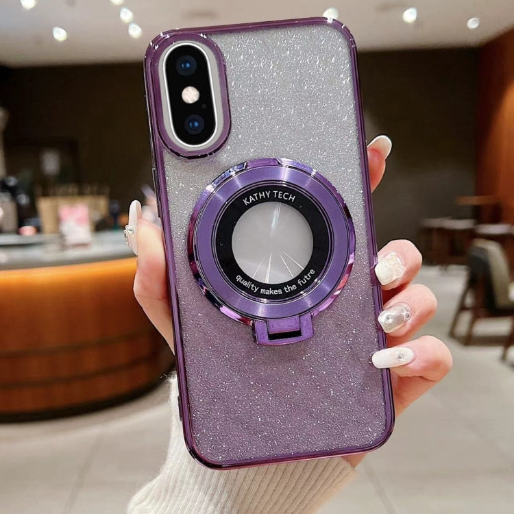 Estuche para teléfono iPhone Xs Max Magsafe con soporte galvanizado y brillo degradado (Púrpura)