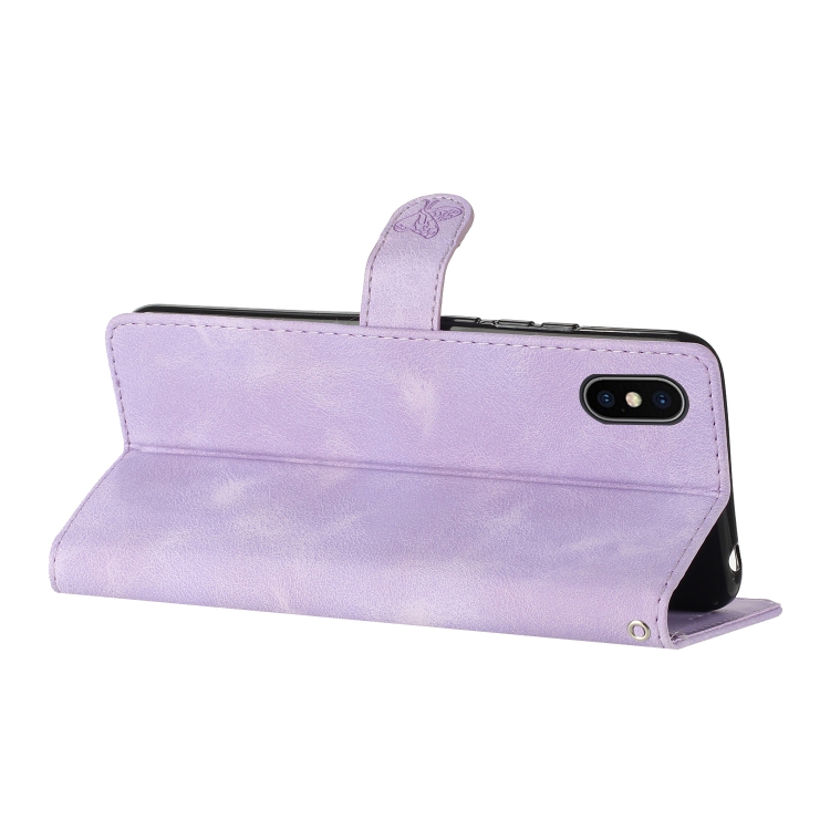 Funda de Cuero para Teléfono iPhone Xs Max Flower Embossing Pattern (Púrpura)