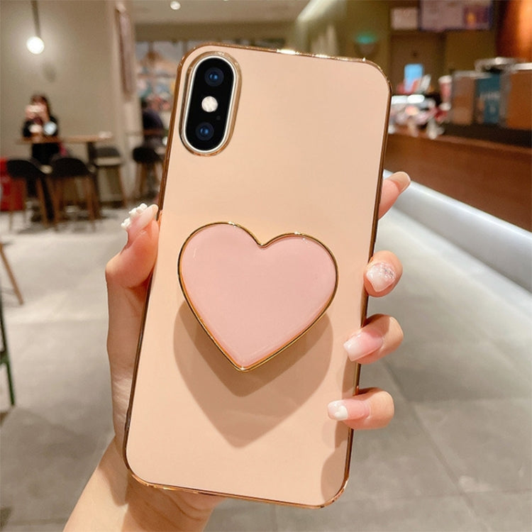 Funda para Teléfono iPhone Xs Max Galvanoplastia Love Heart Holder TPU (Rosa)