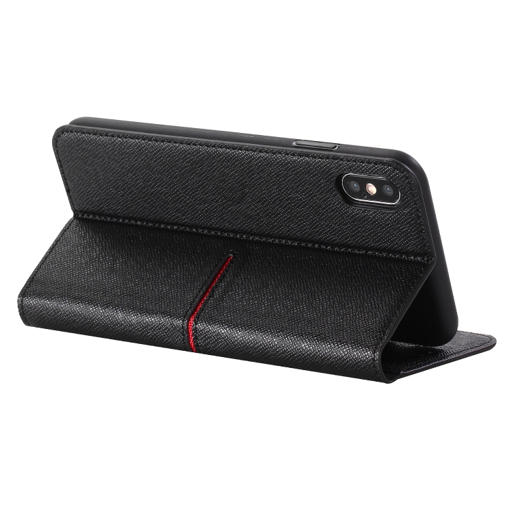 Funda Protectora Gebei para iPhone Xs Max con Tapa Horizontal de Cuero de Grano Superior Soporte Ranuras Tarjetas Billetera Marco Fotos (Negro)