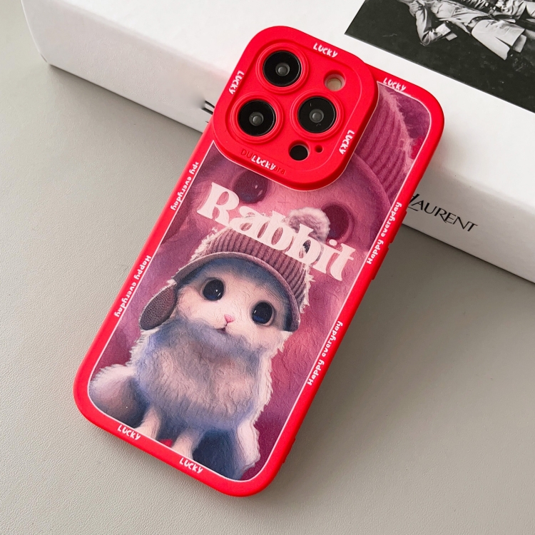 Funda para iPhone Xs Max Liquid Silicone Oil Painting Rabbit (Rojo)