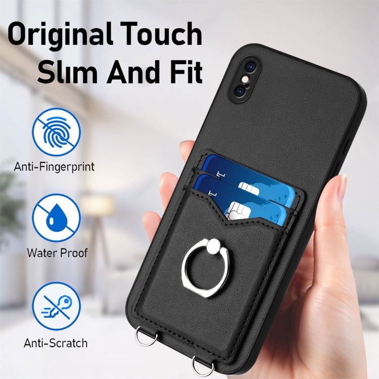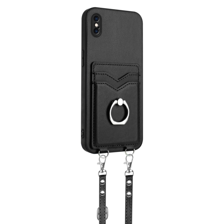 Funda para Teléfono iPhone Xs Max R20 con Soporte para Tarjeta y Anillo de Cuerda Cruzada (Negro)