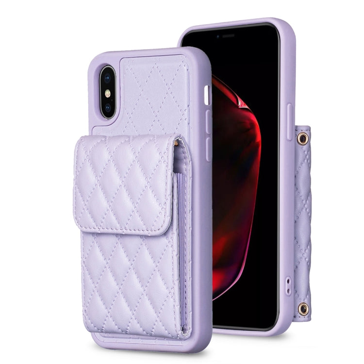 Funda para iPhone Xs Max Wallet Vertical Rhombic Cuero (Púrpura)
