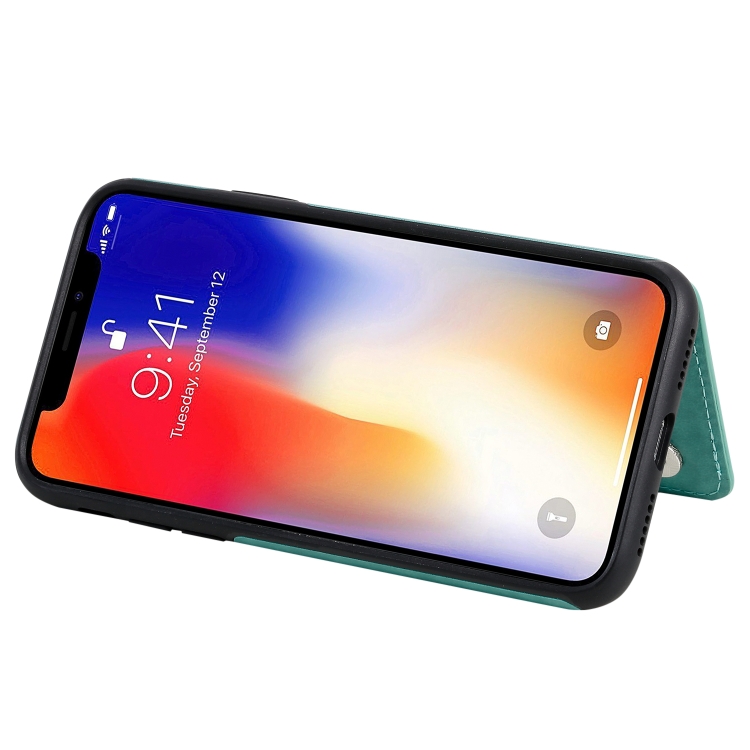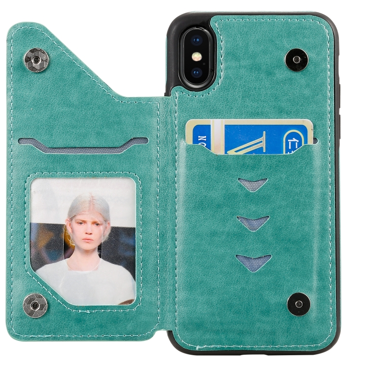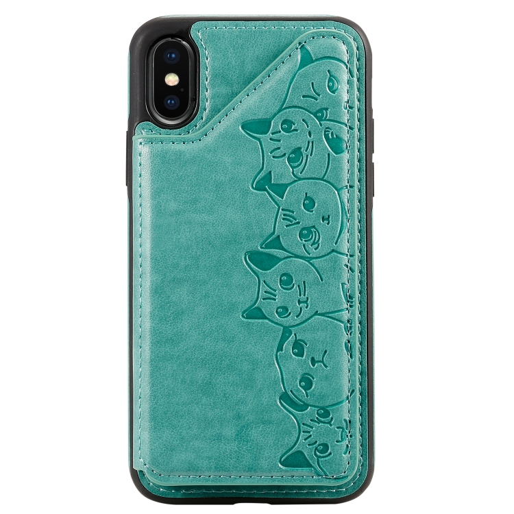 Estuche Protector para iPhone Xs Six Cats con Patrón En Relieve Soporte Ranuras para Tarjetas y Marco de Fotos (Verde)