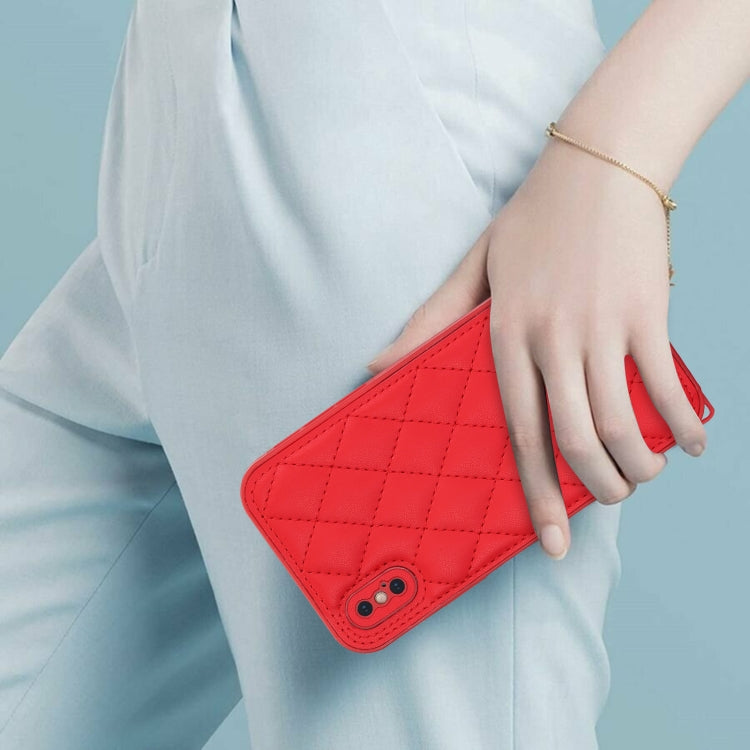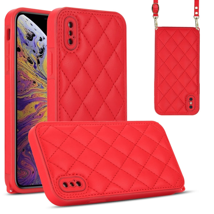 Estuche para Teléfono iPhone Xs / X Textura Rómbica con Cordón Doble (Rojo)