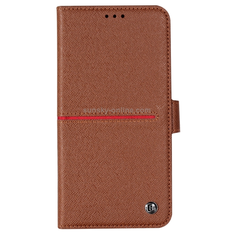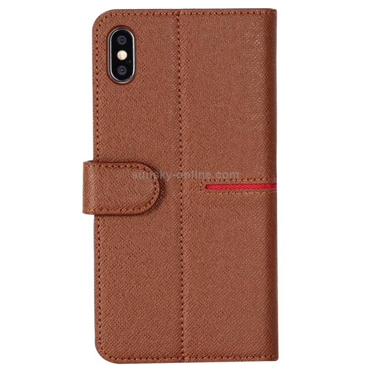 Funda Protectora para iPhone Xs / X Gebei con Tapa Horizontal de Cuero de Grano Superior, Soporte, Ranuras para Tarjetas y Marco de Fotos (Marrón)
