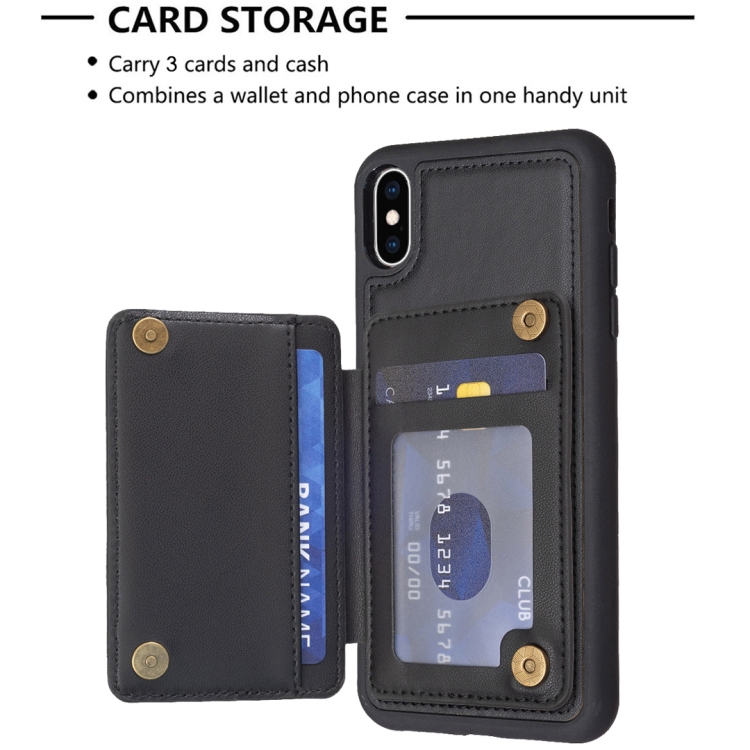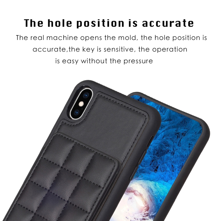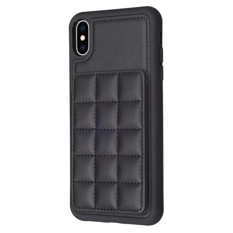 Funda para Teléfono iPhone Xs / X Grid Ranura para Tarjeta con Soporte (Negro)