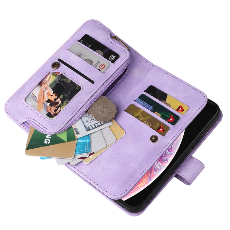 Funda para iPhone Xs / X con Ranura para Tarjeta Multifuncional y Cremallera de Cuero (Púrpura)