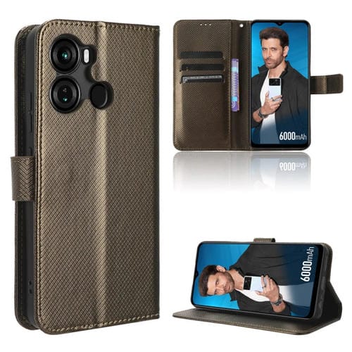 Caja de Teléfono para Itel P40 de Cuero con Textura de Diamante (Marrón)