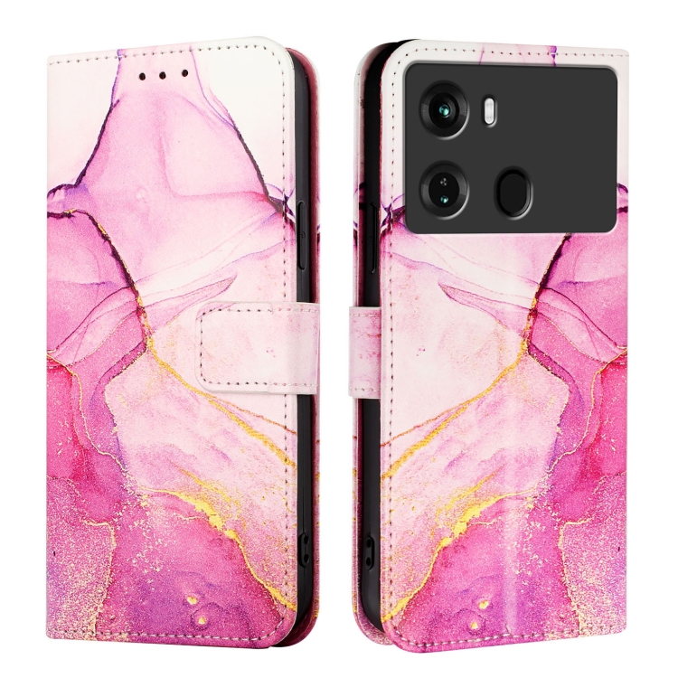 Funda para Itel P40 Pt003 de Cuero con Tapa y Patrón de Mármol (Rosa, Morado y Dorado)