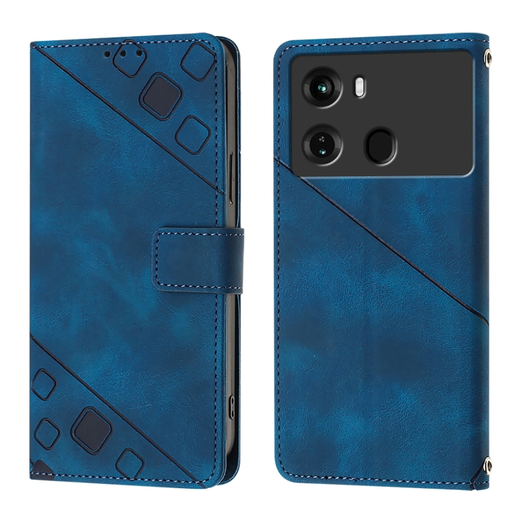 Funda de Cuero para Itel P40 Skin Feel con Relieve (Azul)